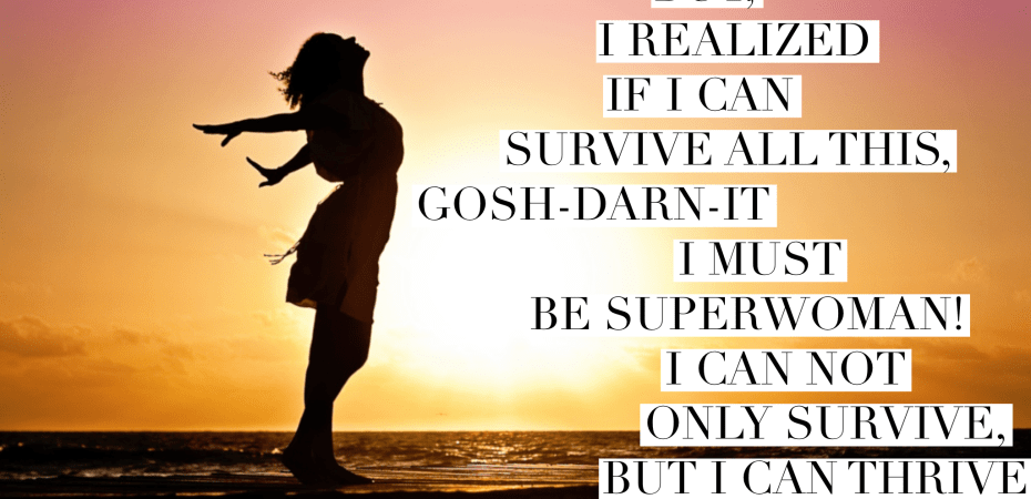 But, I realized if I can survive all this, gosh-darn-it I must be SUPERWOMAN! I can not only survive, but I can thrive.