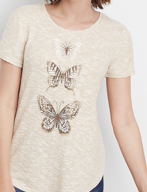 Yesterday I bought myself a new shirt that called out to me… seriously, it’s a graphic tee with three butterflies that symbolize their growth. Remind you of anyone?! 😜 They had a BOGO half off sale so I ended up getting a shirt for my friend to go in a care package I was putting together…