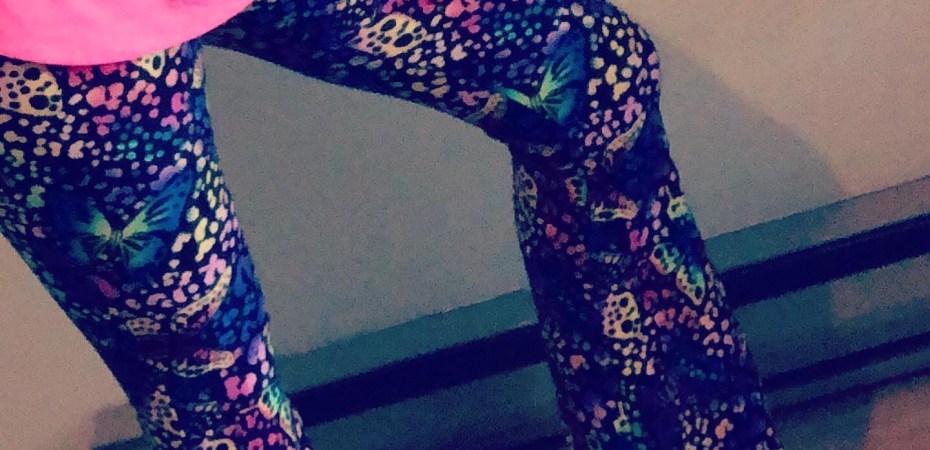 Today as I was shopping I found some leggings that completely screamed my name. Bright colored with butterflies and with the bell bottom flare (I’m an oldies girl) So, in the cart they went!